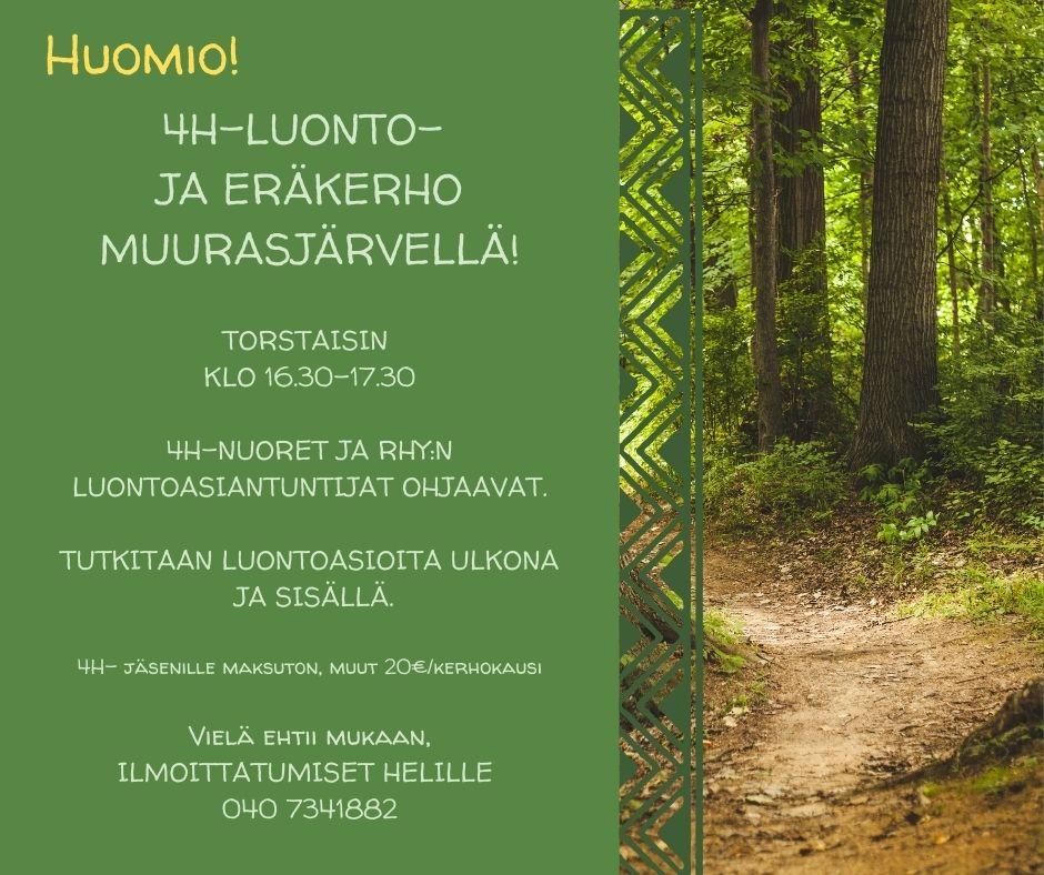 To 16.30 - 17.30 Luontokerho Muurasjärvellä (pääosin 1. -6. lk - mutta kaikki tervetulleita!) Alkaa 11.9.