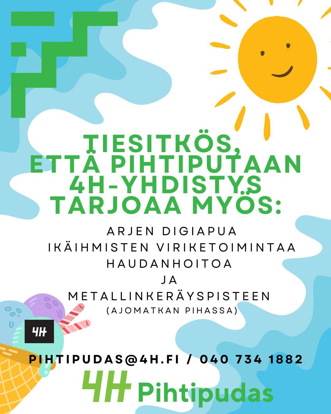 Pihtiputaan 4H-järjestää lapsille ja nuorille kerhoja, leirejä ja kursseja sekä erilaisia tapahtumia.